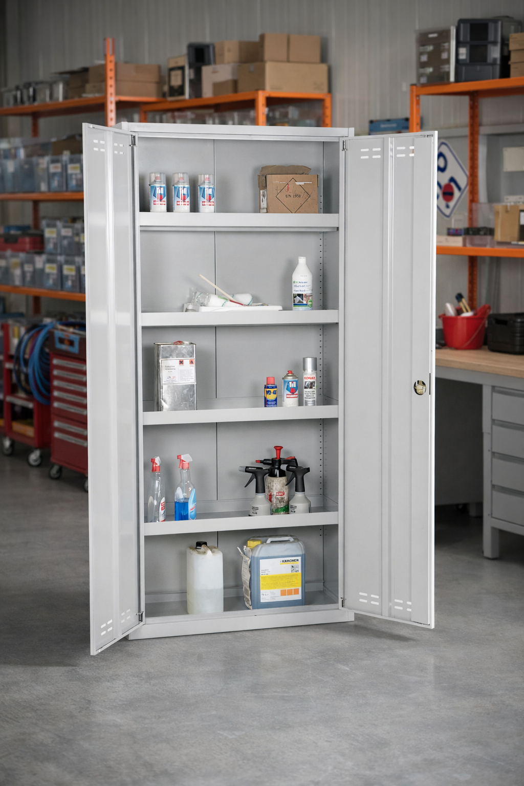 Vårt kemikalieskåp är designat för att ge maximalt skydd och säkerhet för alla typer av kemikalier. Med en robust konstruktion av stål och genomtänkta funktioner, är detta skåp en oumbärlig del av din arbetsmiljö.