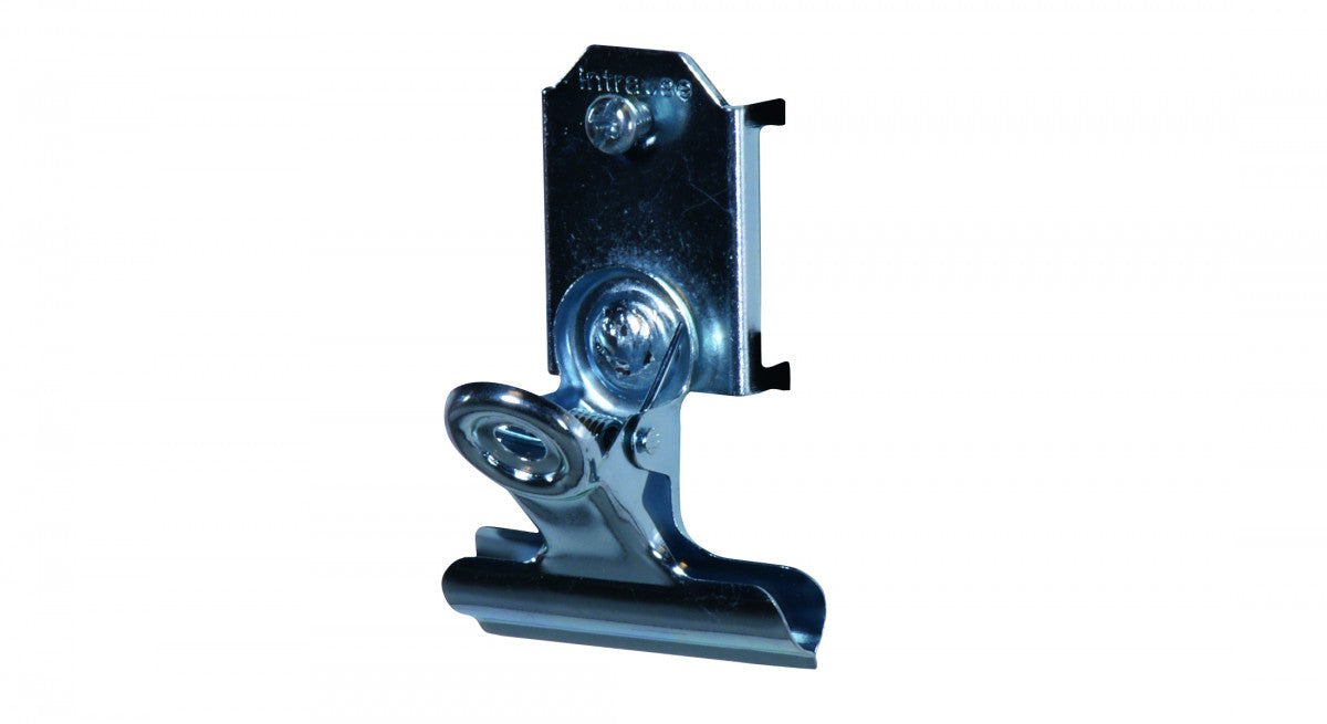 Kroken passar perforerade paneler, där den hakas i plåtens perforering och låses med stoppskruv.