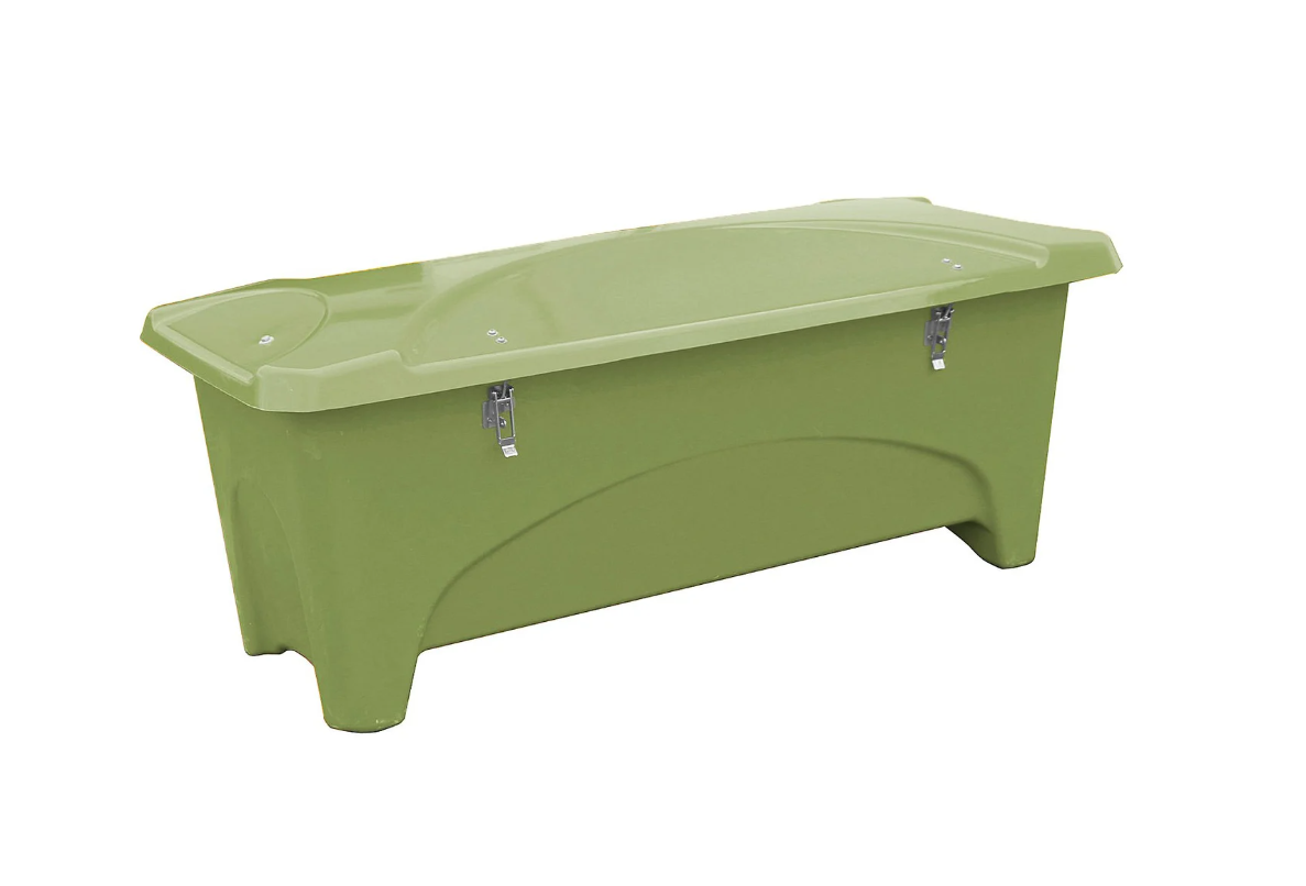 Denna robusta redskapslåda i vakuuminjicerad glasfiberarmerad plast är framtagen för säker och långvarig förvaring av redskap, kemikalier, foder och annan utrustning. Låda och lock är konstruerade med en korrugerad struktur som ger mycket hög stabilitet och hållfasthet även i krävande miljöer. Samtliga gångjärn och skruvförband är tillverkade av väderbeständiga material för maximal livslängd vid utomhusbruk.